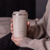 De Aya & Ida CUP2GO is licht van gewicht en eenvoudig met één hand te bedienen. Je opent de beker door simpelweg de deksel omhoog te klappen. Wanneer hij gesloten is, is hij 100% lekvrij. Dat betekent dat je hem zonder zorgen in je tas kunt stoppen en jouw warme kop koffie of ander drinken overal mee naartoe kunt nemen.